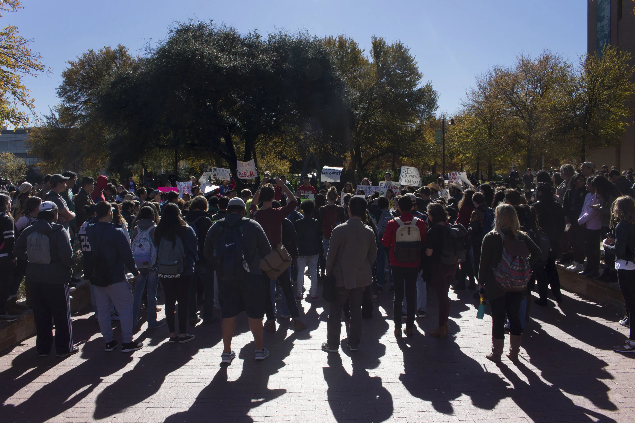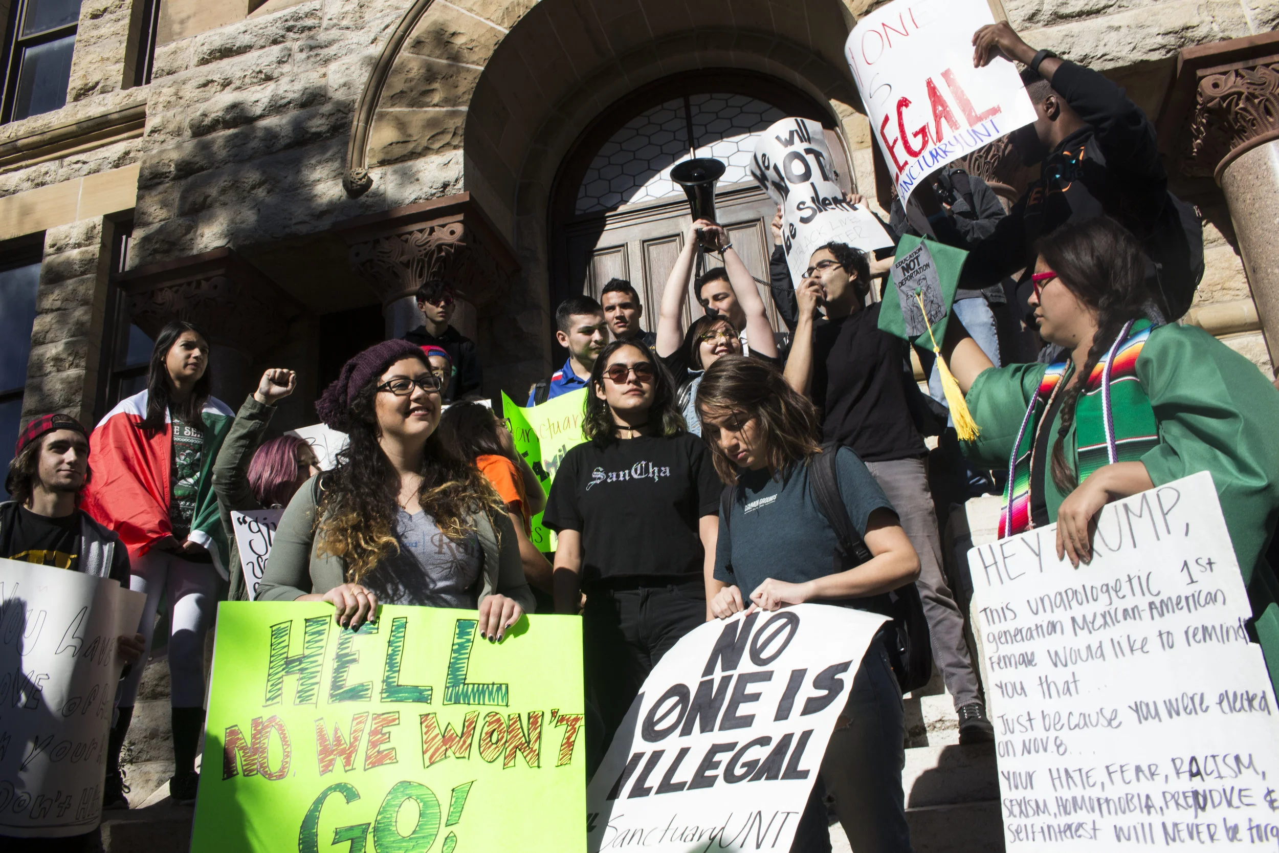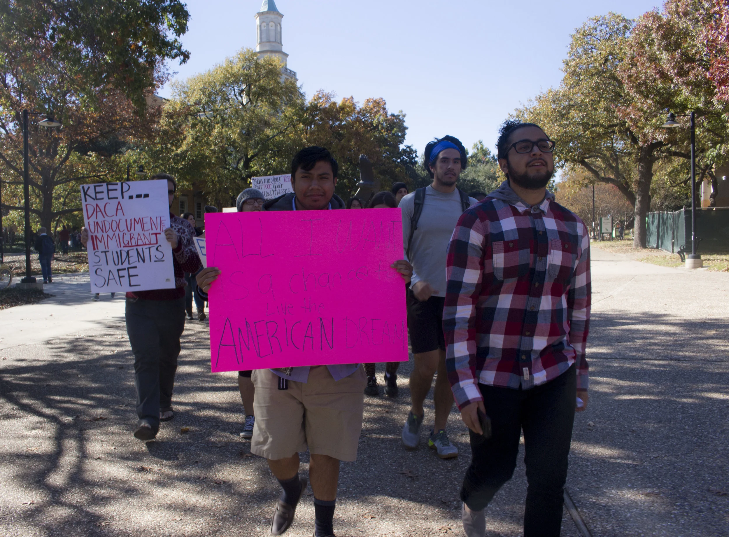 Denton Police aided marchers, blocking off roads as they moved toward the square. Protesters were calling for the university to allow to protect undocumented immigrants from President-elect Donald Trump’s plan to repeal the Deferred Action for Childhood Arrivals Act, also known as DACA.