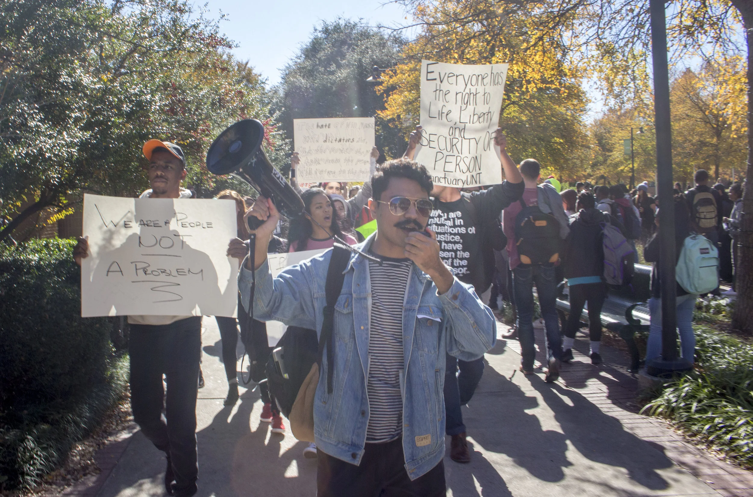 Organizers of the demonstration, prior to the march, gathered over 1,000 signatures on a petition to declare UNT a sanctuary campus and used this as a call to action. Demonstrators began a public forum at the Onstead Promenade near the center of campus around 12 p.m. and later marched through campus to the downtown square.